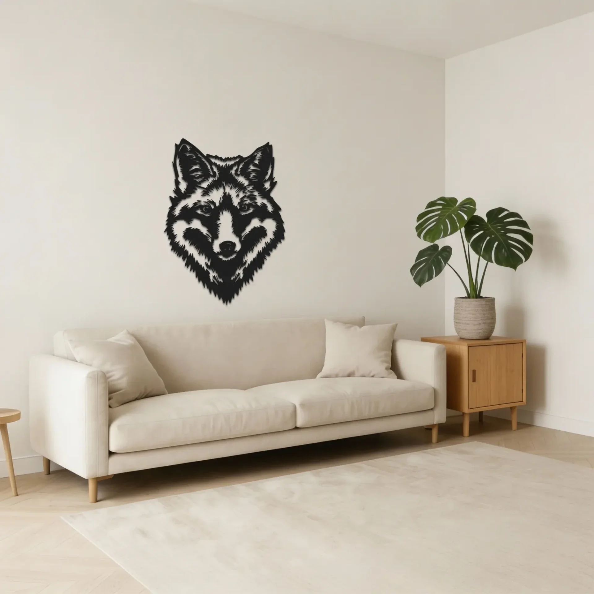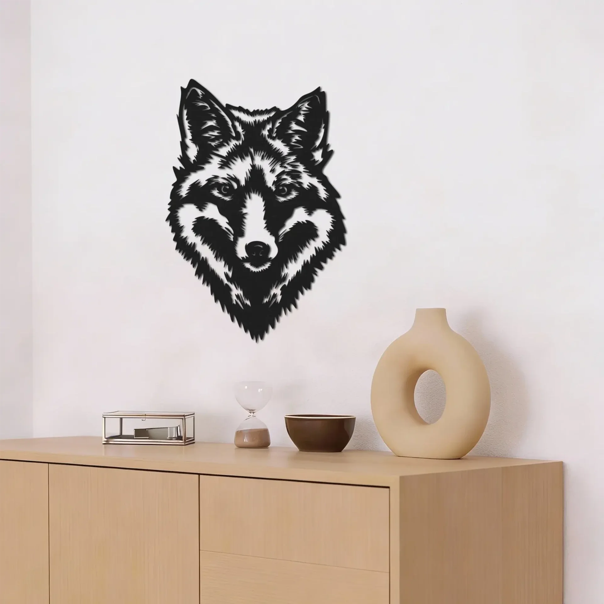 Ben je het beu om naar een kale muur te staren of voelt je interieur wat saai aan? Dan is deze wolf wanddecoratie de perfecte eyecatcher. Het krachtige silhouet zorgt meteen voor sfeer en karakter zodra je de ruimte binnenkomt.