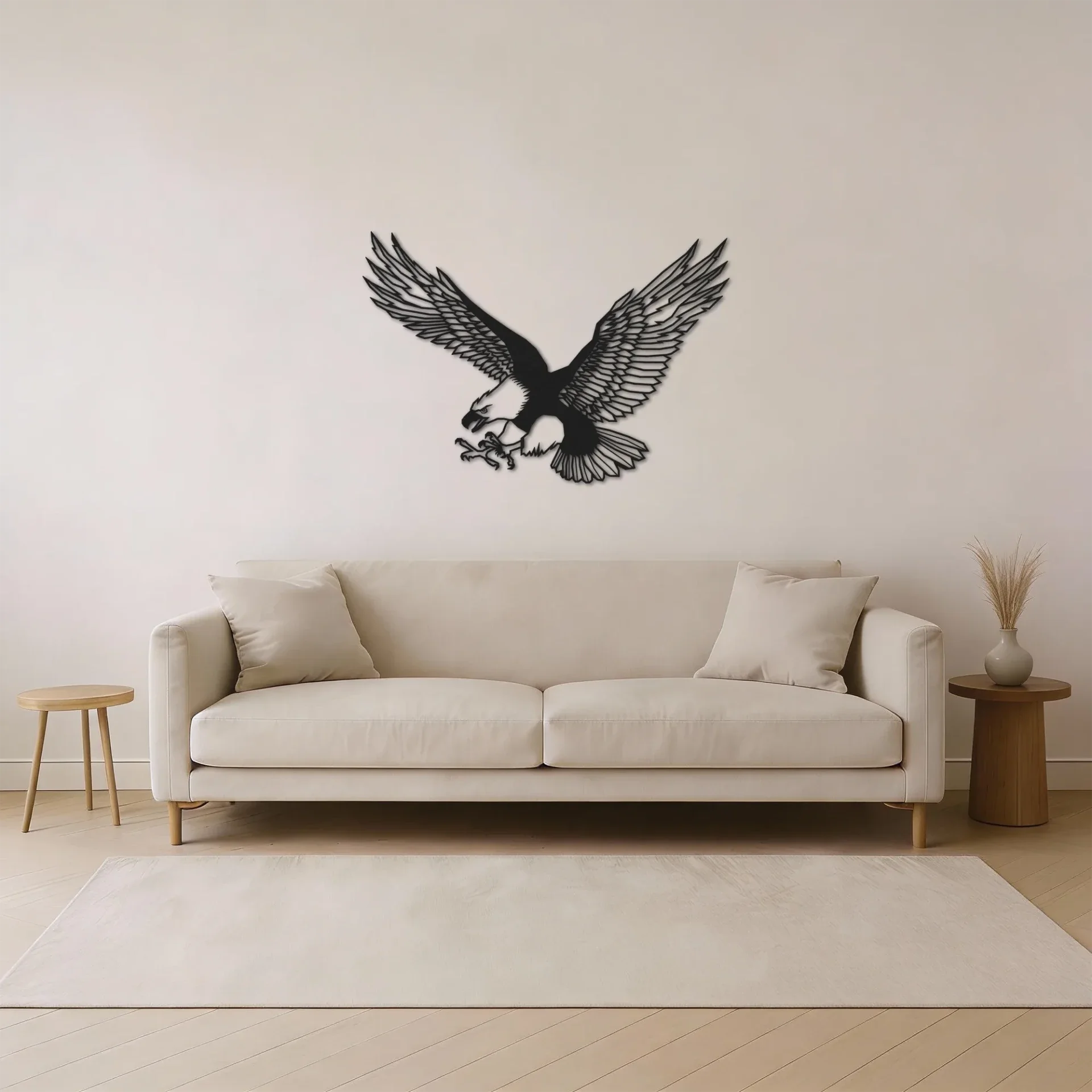 Ben je het beu om naar een kale muur te staren of voelt je interieur wat saai aan? Dan is deze adelaar wanddecoratie de perfecte eyecatcher. Het krachtige silhouet zorgt meteen voor sfeer en karakter zodra je de ruimte binnenkomt.